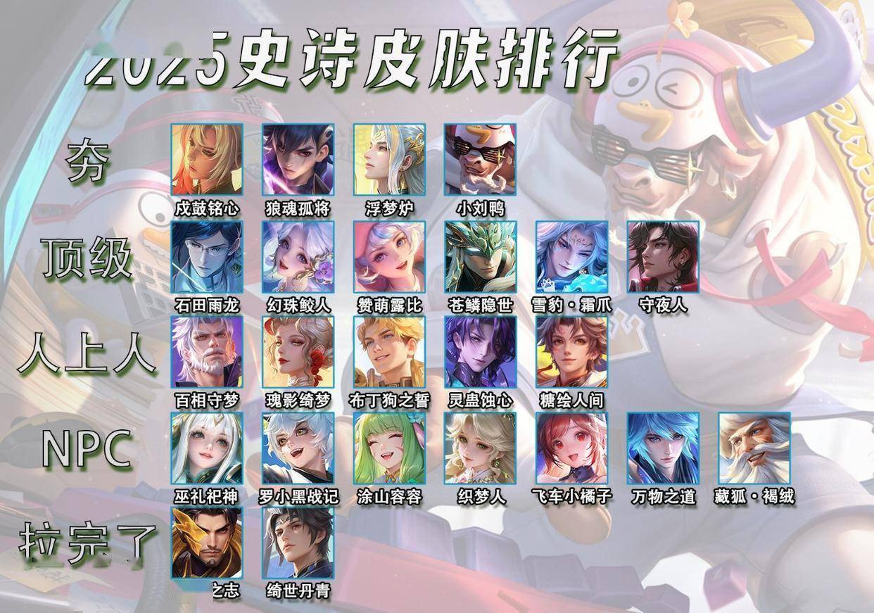 这篇文章我们来看一下2025年的史诗品级皮肤排行。