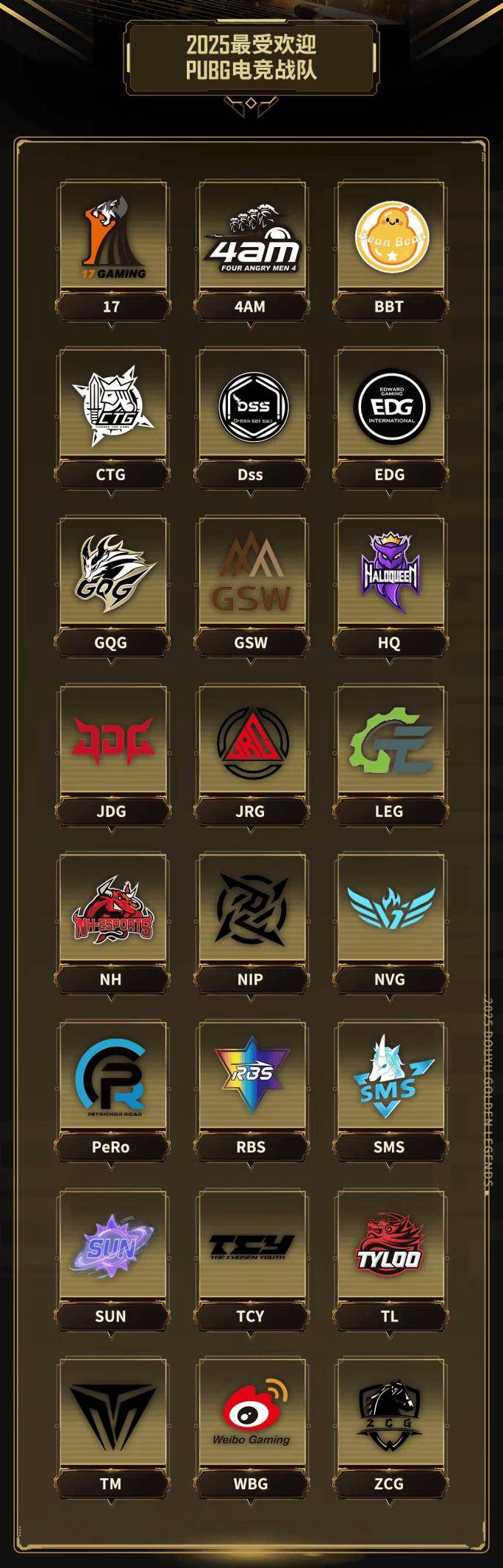 -2025最受欢迎PUBG电竞战队-