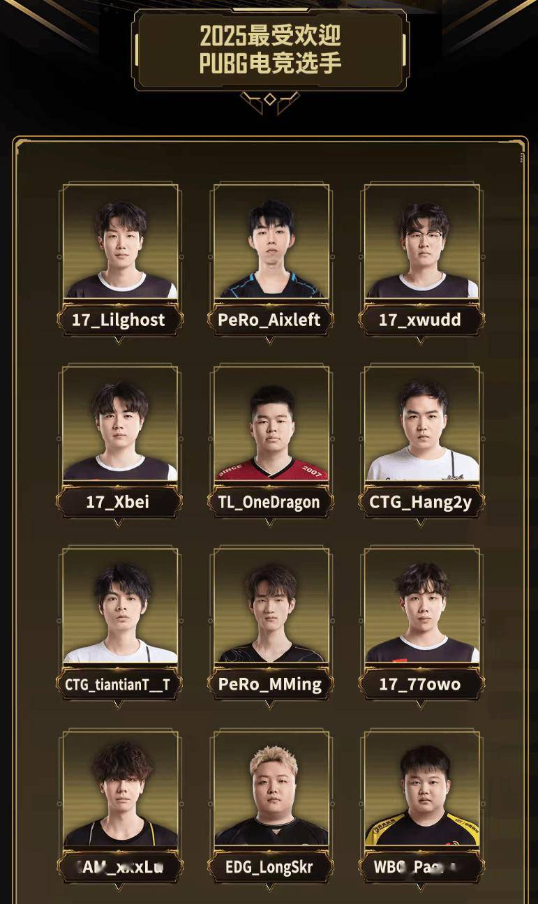 -2025最受欢迎PUBG电竞选手-