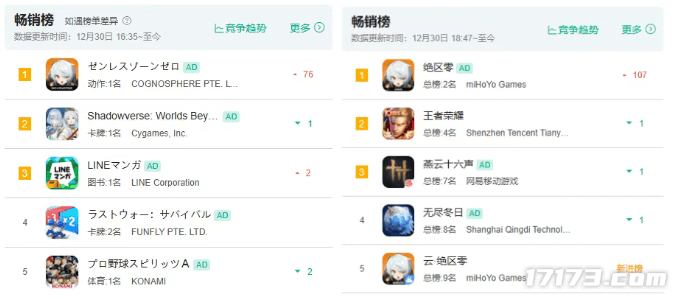 划重点:《绝区零》2.5版本登顶国区日区IOS游戏畅销榜首