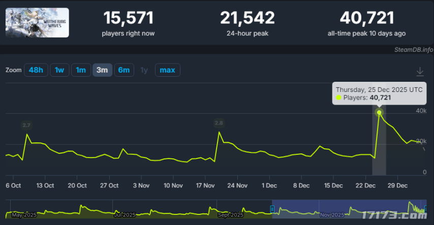 鸣潮的3.0版本可谓是吸引了不少玩家关注,不仅在国内的热度空前火热,在海外也迎来了不错的人气。尤其是Steam平台上《鸣潮》也迎来了一波人气提升,现在游戏的日峰值已经达到4w了。