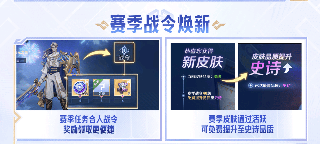 最后再说一个大家最最最关心的一点,那就是战令的调整,新赛季战令和赛季任务将调整到统一入口。