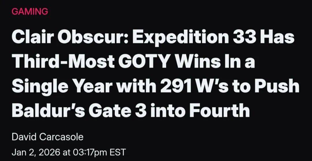 2025年已经结束,属于2025年的各种榜单也大多都停止了投票和后续统计。众所周知,在2025年度,只要是有游戏投票的地方,就可以看到无处不在的《33号远征队》。