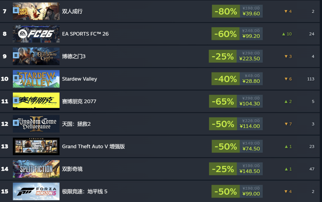 从短期因素来看,这次破记录受到Steam冬季特卖活动的一些影响。不少游戏都在冬促期间给出了“史低”折扣,比如五折的《天国:拯救2》、一折仅售11.6元的《极乐迪斯科》,《巫师3》也降至14.9元。价格上的刺激,在一定程度上推动了用户的活跃度。