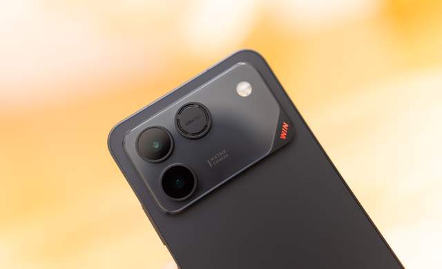 磨砂质感的后盖搭配透明的摄像头DECO盖板显得精致异常,而摄像头DECO右下角的红色“WIN”字符可谓画龙点睛,让人一眼可以认出。