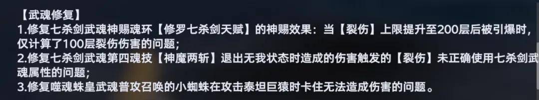 接着还有三条针对尘心裂伤队的技能调整,全部都是加强项的调整,且幅度还不一般,其中第一个调整官方也说明了是为了配套尘心的神赐魂环来触发的,更容易去触发200层的引爆效果。