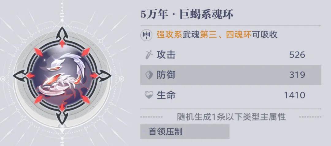 接着特别提一句这个金色属性的自选魂环到底应该优先选啥的疑问,那么这个自选的范围其实是非常大的,四个系别的魂环都可以选,这里优先大家考虑主C需要的魂环,然后针对属性嘛,主C目前针对绝大部分玩家最为核心且有不容易获取的属性就是“首领压制”了,只要大家的常规增伤属性,如暴击伤害、会心伤害等不是过低(比如连100%这种门槛都还没达到的话),首领压制这个属性实为一个可以一劳永逸的不纠结属性,未来不管是会心流还是暴击率的主C都可以沿用这个方案,大家可以参考一二。