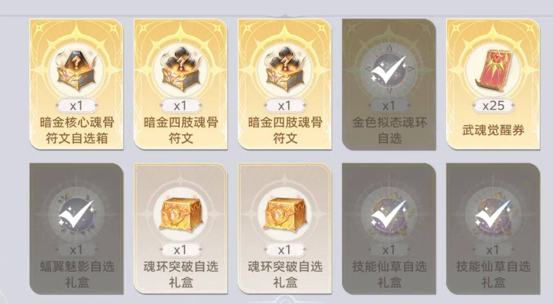 那么此次一共有10个奖励,其中较为核心的奖励共有5个,分别是暗金色的核心魂骨和两个暗金色四肢魂骨的符文,此外还有一个金色拟态魂环的自选和25张武魂觉醒券,这5个算是此次抽奖中较为重要的资源了,而剩下的5个除了头像框有点收藏价值之外,其余的就相对较为平庸了。