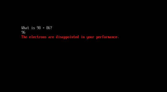 这其中的第一款游戏是“无能评估测试”,要求玩家计算两个 0-99 随机数相加的结果,如果输了电脑就会无情地嘲讽你,然后关机。第二款游戏则是“侮辱剑斗”,玩家必须在游戏中选择正确的回怼台词才能成功启动电脑。