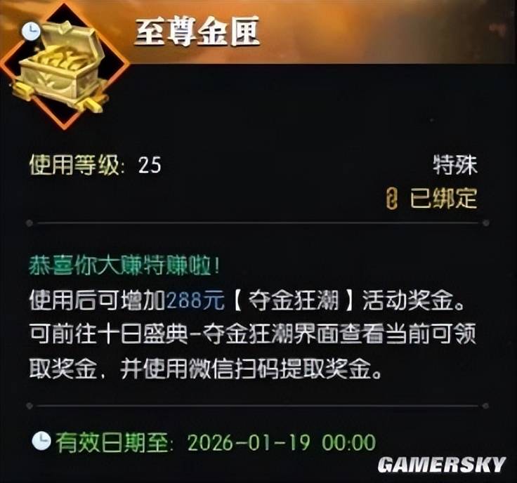 你不仅可以通过将在地宫打到的极品装备拿到市场上卖掉,爽赚一笔,体验“一夜暴富”的感觉。若是运气爆棚,你甚至还能捡到十日服专属的三百万金礼奖励,这里的三百万可不是游戏金币,而是能扫码提现,即时到账的真金白银。