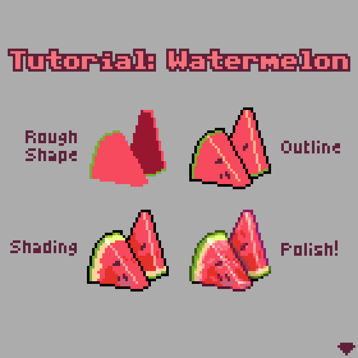3. 像素画教程:西瓜(Twi/X: mirrutatep)。