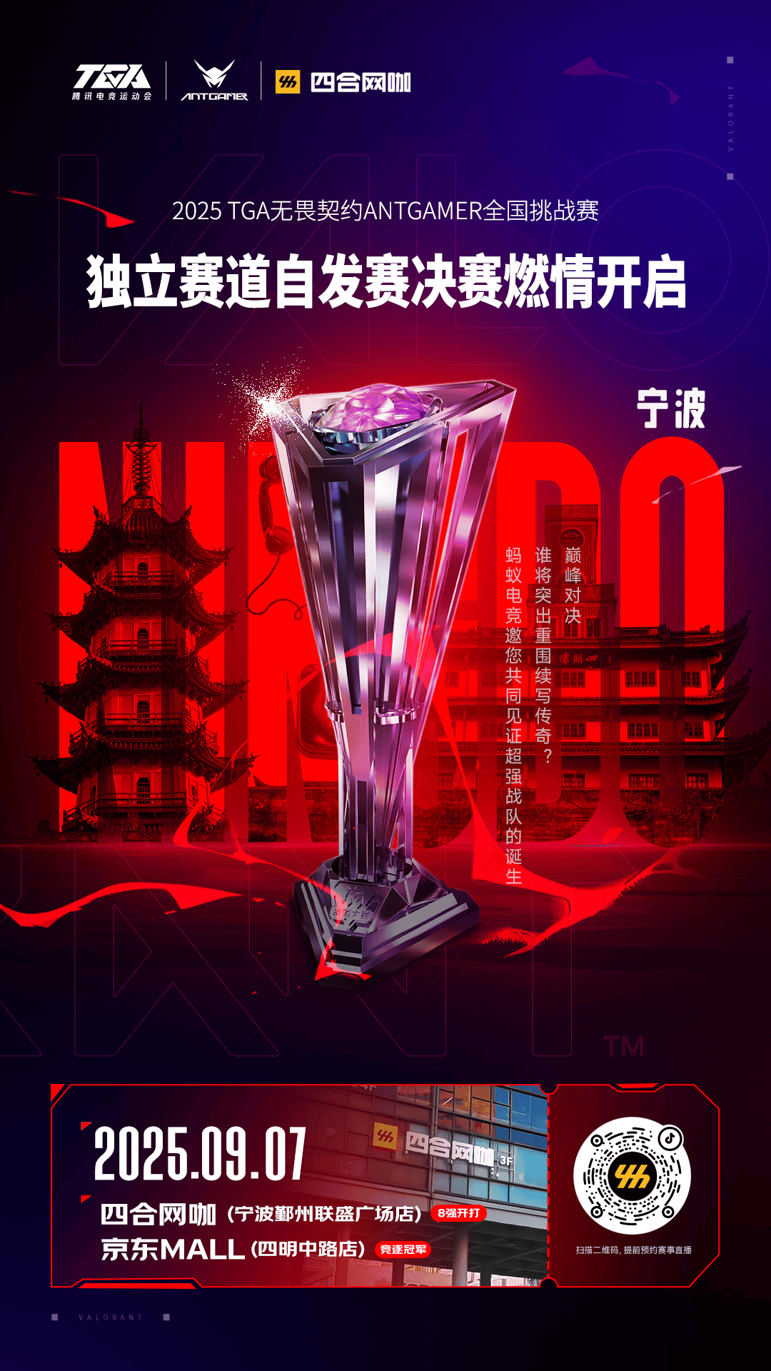 作为腾讯旗下连续举办14年的顶级综合性电竞赛事,2025 TGA无畏契约ANTGAMER全国挑战赛正以燎原之势席卷全国。这场覆盖全年、参赛人次超2.5亿的电竞盛宴,今年创新推出多赛道并行模式——既有联盟赛道的热血角逐,更有实力电竞连锁品牌加持的独立赛道燃动赛场。其中,中国领先的电竞娱乐连锁品牌四合网咖,便以专属独立赛道的身份,为这场电竞狂欢注入了强劲动力。
