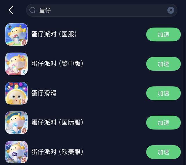 接下来,我们就可以在APP内搜索蛋仔派对手游了,在这里可以一键获取并加速游戏,如果有外服游戏需求的玩家,也可以在这里获取外服蛋仔哦,赶快来体验吧。