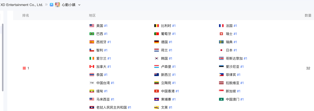 点点数据显示,截至1月13日《心动小镇》仍位居32个地区iOS游戏免费榜榜首。