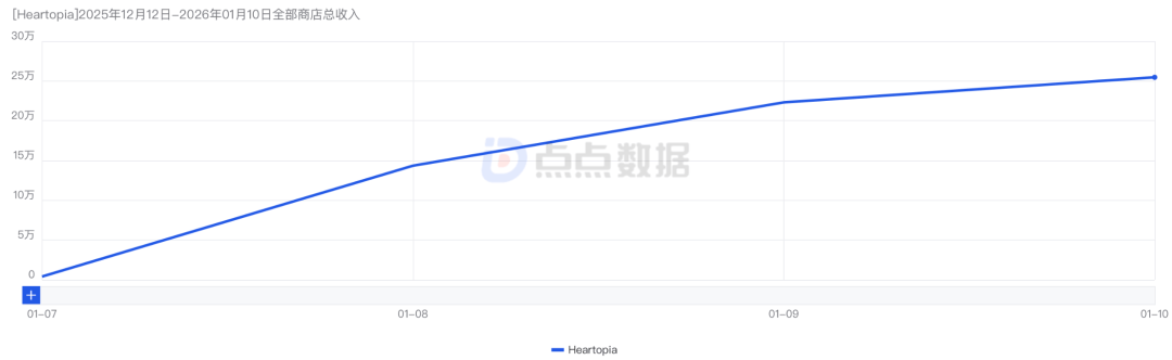 点点数据显示,截至1月10日,《心动小镇》双平台拿下435万元收入。(扣除平台分成)