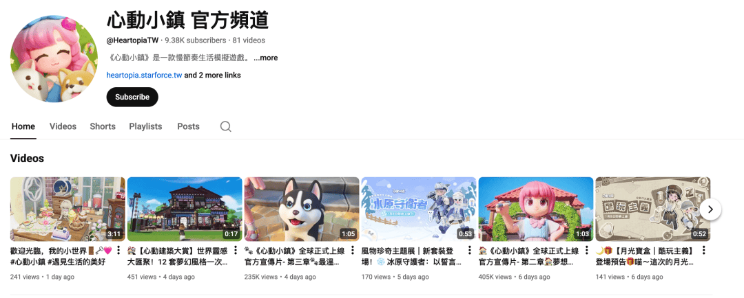 如在YouTube平台《心动小镇》上传了多个传播内容,包括官方介绍片,以及真人实拍的小剧场等。