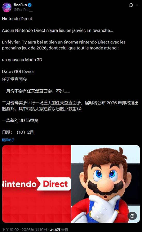 内容包括将在2026年发售的游戏,甚至包括那款所有人都在期待的3D《马里奥》新作。