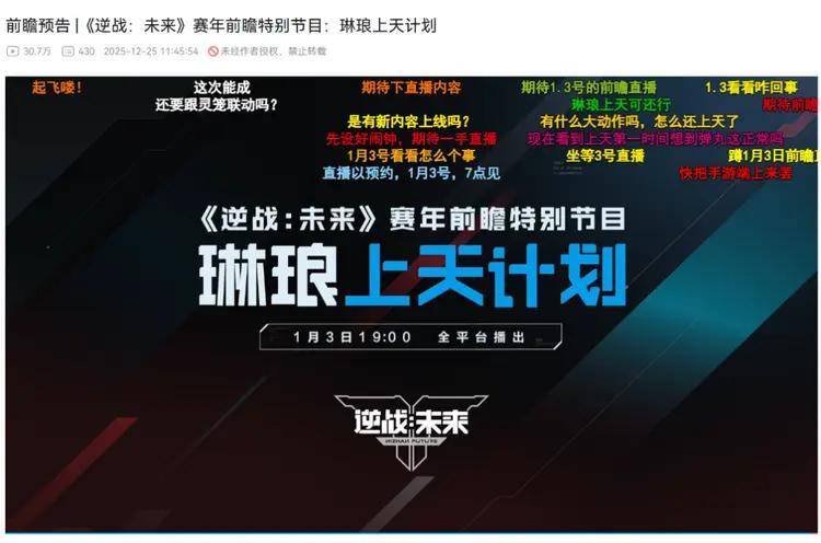 谁能想到,腾讯开年第一场新游前瞻就用“新闻播报”的方式另辟蹊径,直接启动大胆玩梗的“琳琅上天计划”,新老玩家都想尽快知道到底怎么“上天”了,观看兴致就这么被勾起来了。