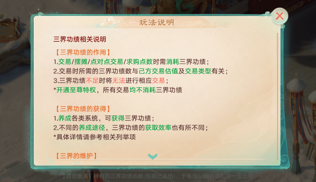 有很多玩家一进来就问,不花钱不开月卡能不能搬砖?不开特权卡,道具掉落默认绑定,交易时需消耗“三界功绩”(通过日常任务或养成系统获取),且交易税率较高,每日银两收益也很少。