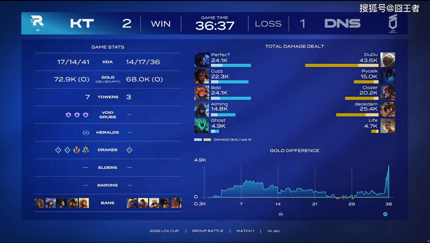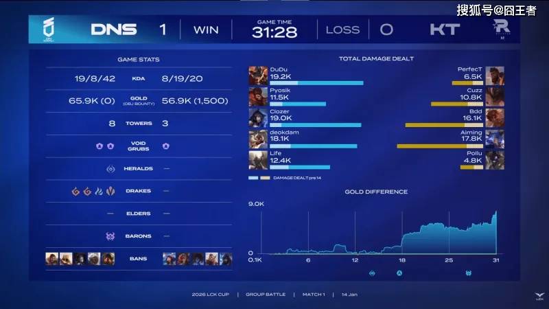 最终KT让一追二战胜DNS,斩落开门红,而且没有让章鱼哥的预言命中,也算是不幸中的万幸了。