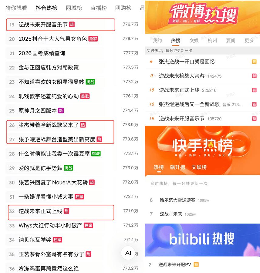 在张杰等诸多艺人和《逆战》IP的号召力下,开服音乐“杰”取得了相当积极的反响,不但登上多平台热搜,也为《逆战:未来》这位IP正统继承人的上线开了个好头。