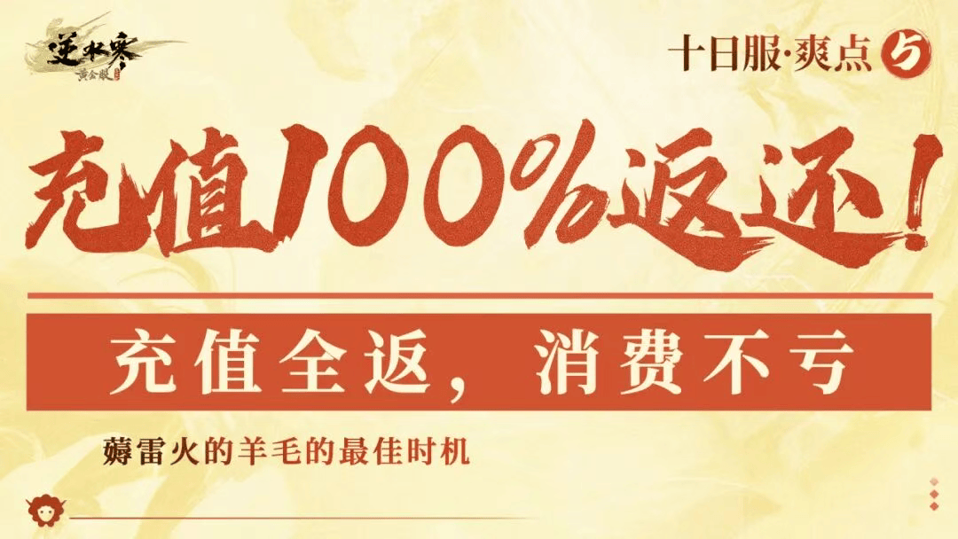看到这里可能会有网友好奇,一个只开十天的服务器,神豪在其中花几十万做外观、装备,就不怕关服清数据吗?事实上《逆水寒》早就做出承诺,玩家在“十日服”中的充值消费,都会全额返还到其他服务器中,如果选择黄金周年新服更是能拿到1000%的返利!