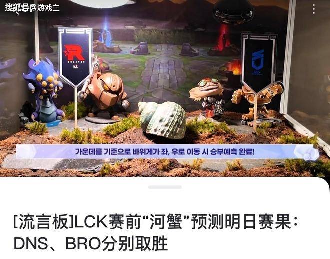 在比赛开始之前,lck官方搞了一个岩蟹预测,鱼缸两侧分别放上比赛的两支队伍看这只岩蟹会选择哪支队伍。第一轮是kt战队和DNS战队,结果他选择了DNS获胜,第二轮则是dk战队和bro战队,竟然还是选择了右边的队伍bro战队。两轮预测下来,kt战队和dk战队将会在揭幕战的对抗中失败,网友也是纷纷调侃,这是不是反着预测的?毕竟单从纸面实力来看,dk战队和kt战队绝对是顶级队伍,他们两个都有着世界赛对抗的实力,尤其是kt战队,还是上个赛季的世界赛亚军。