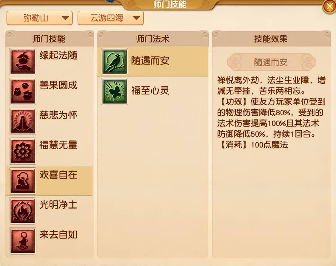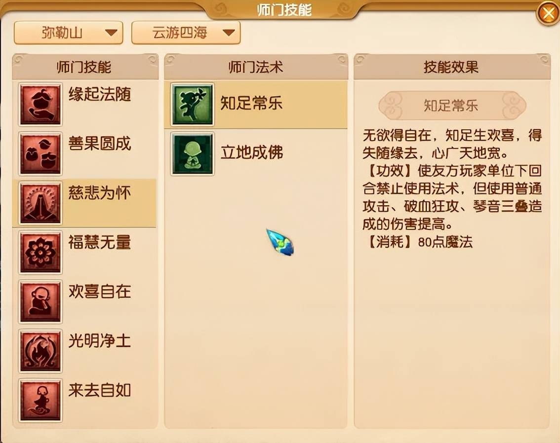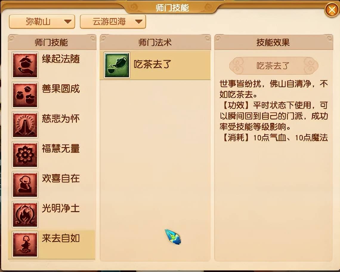 回门派的技能(80级必定成功)。