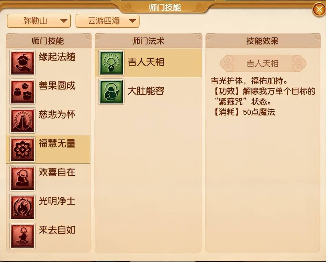 消耗50点魔法,解除己方单个目标的紧箍咒。