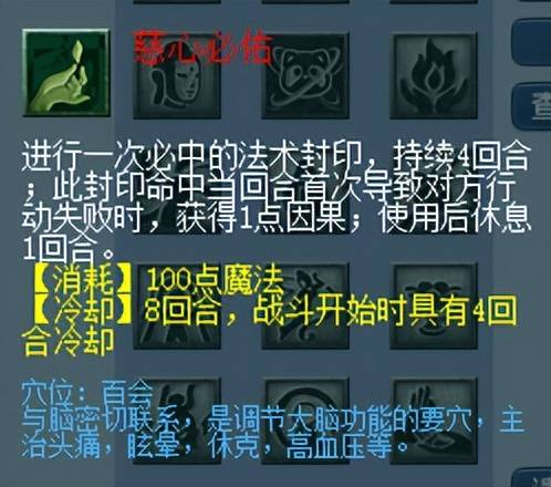 大招是必中封印,但要休息一回合。第八丹和第九丹的效果都是增加30点速度。