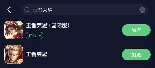 接下来,我们就可以进入到APP内搜索王者荣耀国际服手游了,在这里可以一键获取并加速游戏,完美解决游戏卡顿延迟等网络问题~