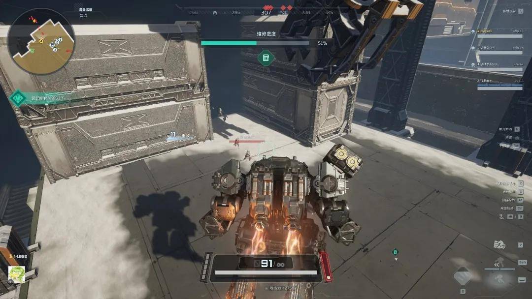 玩家不必再像竞技游戏中那样精确计算每一发子弹的落点、预判每一个敌人的走位。游戏提供了多种“爽刷”方式——面对尸潮,可以端起冲锋枪直面尸潮扫射,可以释放天赋技能造成范围伤害,也可以在关键时刻按下Z键,直接跃入机甲变身“钢铁巨兽”。尤其是后者,那种按住左键就能用机炮横扫一片的快感,几乎没有任何学习成本,却能将视觉与操作上的双重正反馈瞬间拉满。