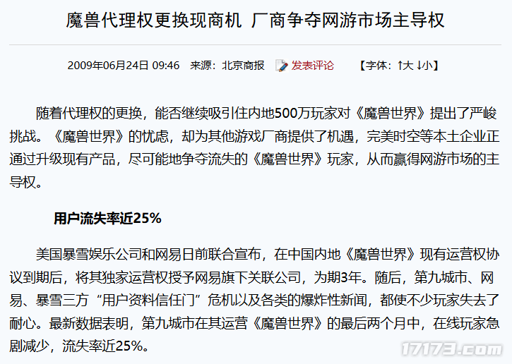 网易硬生生从第九城市手里抢走了《魔兽世界》代理权,直接把九城从昔日顶流给干到路边一条。