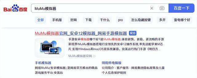首先通过浏览器搜索“MuMu模拟器官网”或直接搜索“MuMu模拟器”,找到并进入带有【官方】标识的网站。