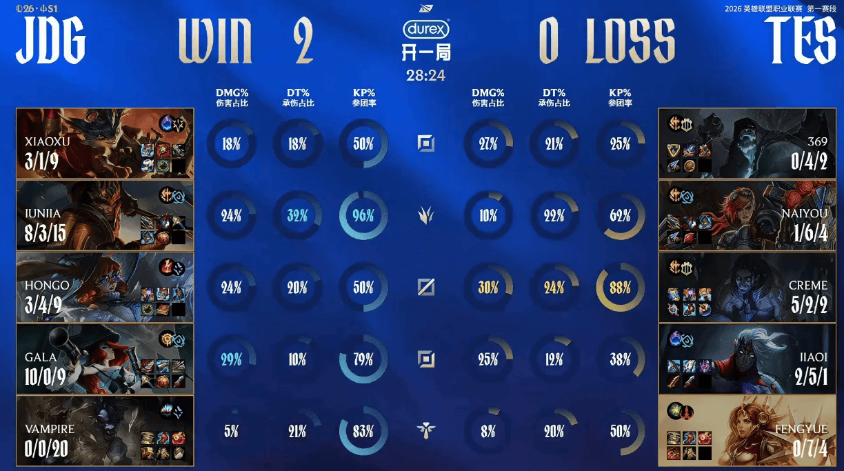 昨日,LPL第一赛段小组赛迎来两场揭幕战,其中次轮大战JDG vs TES最引人关注,因为大家都想知道缺少阿水的TES究竟是什么水平。果不其然,在双方下路实力差距较大的情况下,JDG以2-0比分轻松击败TES取得赛季开门红。