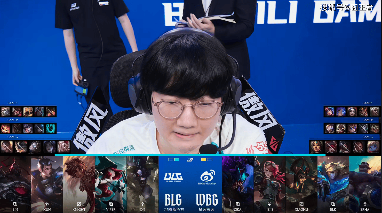 第三局比赛,BLG蓝色方,禁用:杰斯;兰博;发条;卡莎;洛,选用:Bin塞恩;Xun赵信;Knight岩雀;Viper女枪;ON牛头;WBG红色方,禁用:波比;卢锡安;阿卡丽;霞;希维尔,选用:Zika雷克赛;Jiejie蔚;Xiaohu蛇女;Elk伊泽瑞尔;Erha布隆
