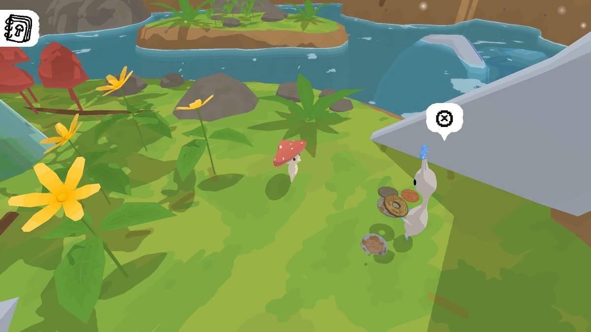 《Smushi Come Home》的流程充满惊喜,尽管你只是一只无功无过的蘑菇,但路上的原住民会赠与你冒险的装备——你可以滑翔、攀登、飞行,能记录你的同类学到新的知识。