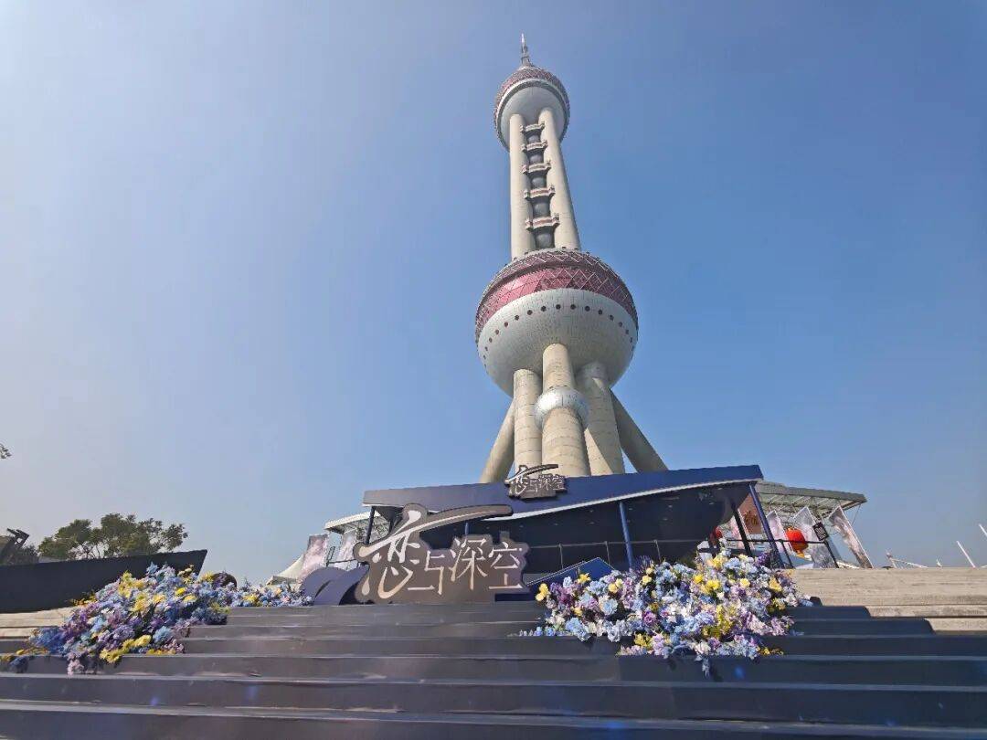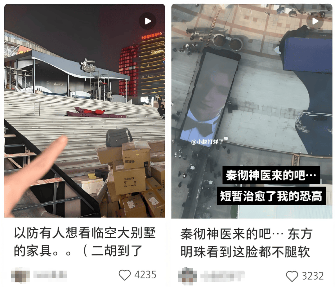 虽然这场主题展的正式开幕时间是今天(1月16日)。但临近的这几天,我不断在网上刷到有玩家跑到现场「监督」、「汇报」搭建情况。甚至有人顶着恐高,登上了东方明珠,俯瞰下方活动场地。