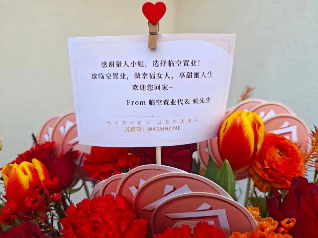 值得注意的是,这里面夹了一张来自「临空置业代表 姚先生」的贺卡:“感谢猎人小姐,选择临空置业!选临空置业,做幸福女人,享甜蜜人生。欢迎您回家~”路过这儿时,我听到有玩家笑着调侃:“姚先生,还能是谁?好难猜呀~”