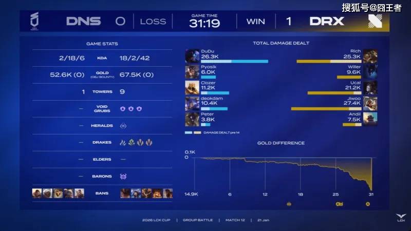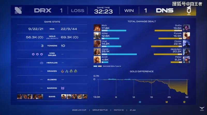 按照赛程安排,1月21日的比赛是由,DK对阵NS,以及DRX对阵DNS带来。在率先结束的第一场比赛中,DK三局战胜NS。那么,接下来DNS和DRX,他们究竟谁能赢下比赛,让我们一起来看一下吧。