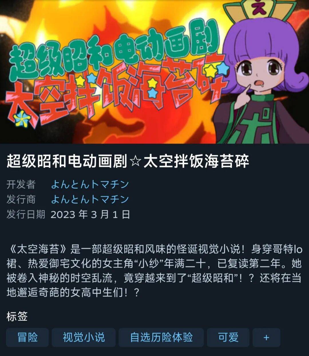 比如最近马上要出简中的《超级昭和电动画剧 太空拌饭海苔碎》。