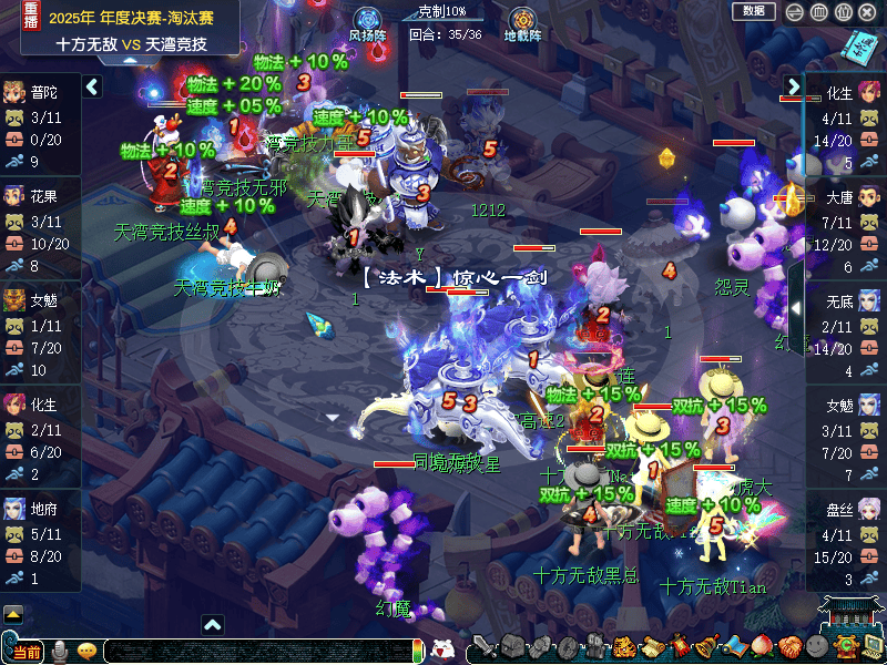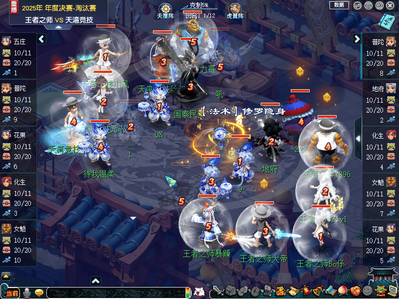 最后的败者组决战在【王者之师】与【天湾竞技】之间上演。双方不约而同地派出“力普陀+花果山+女魃墓”为核心的三攻阵容。然而【王者之师】凭借地府更强的功能性压制了对手的五庄观,仅用12回合便迅速终结比赛,夺得最后一张宝贵的线下赛门票。