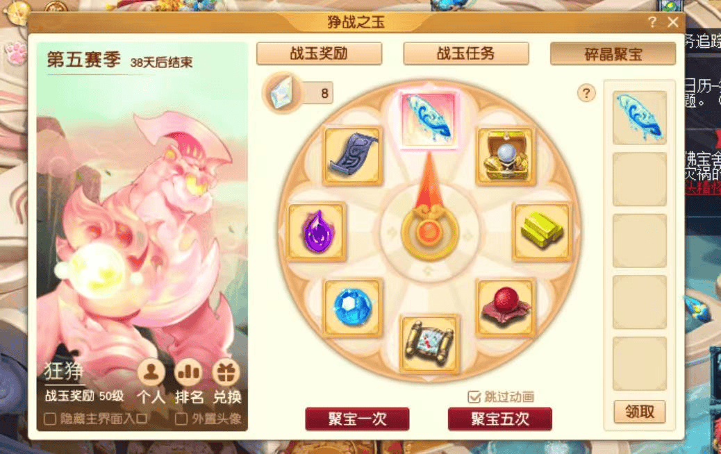 今日,一位热爱帮派赛事的玩家在积攒了不少战意碎晶后,仅用一次聚宝抽奖机会,就抽中了高颜值锦衣武器“潮汐帆板”,可为角色增值数百元。