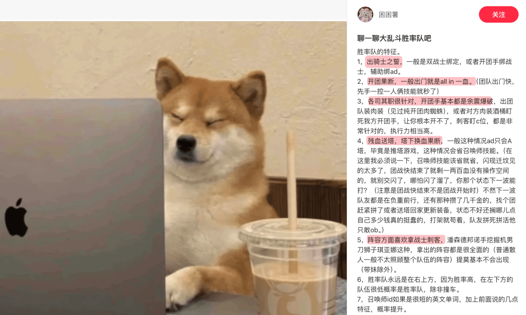 无论是抖音、小红书还是公众号,海斗相关的图文视频都是爆发式出现。很多号就是专门研究起海斗,“今天版本什么符文最强”、“拿到这张牌怎么出装”,关键数据还都挺好的。