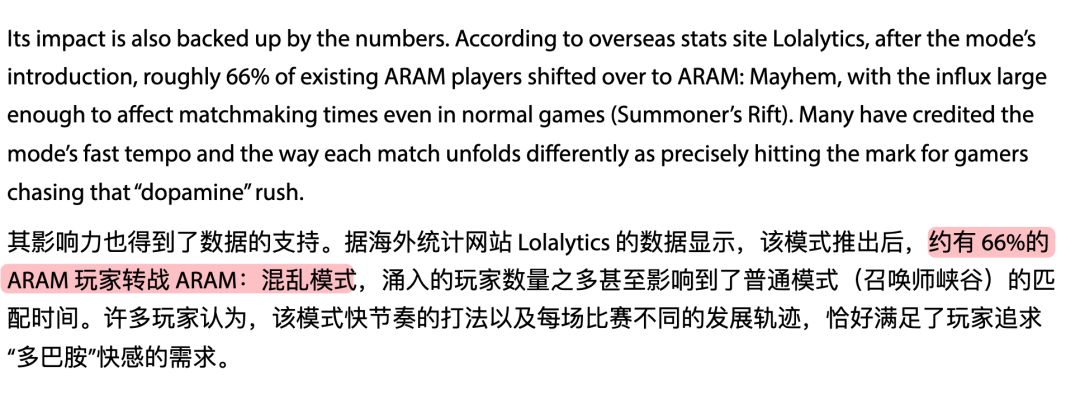 外服在 15.21 版本上线海克斯大乱斗后,极地大乱斗玩家暴跌了 66%。