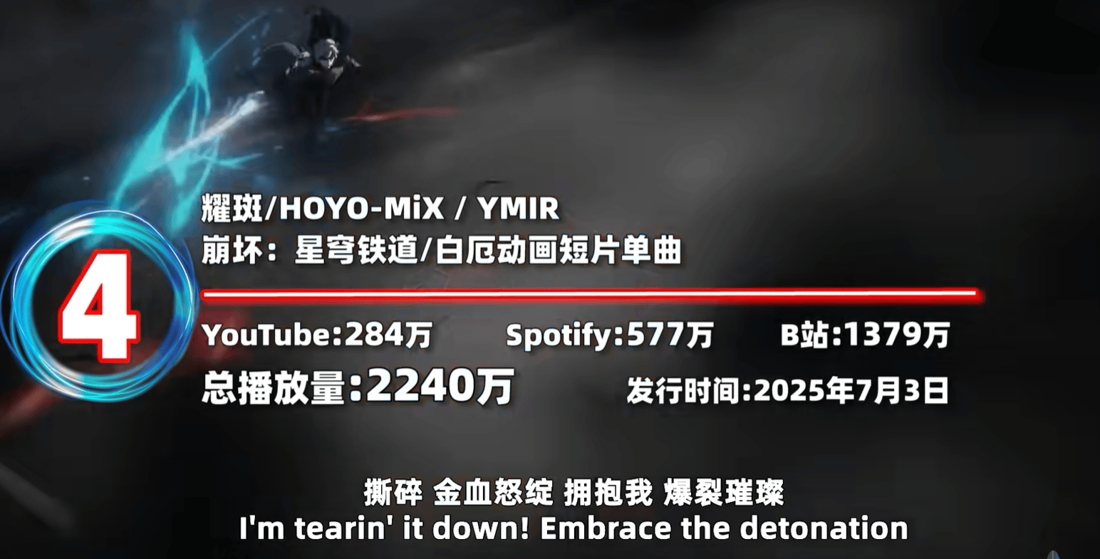说起《崩坏:星穹铁道》,不少网友第一反应都是封神剧情和精致建模,反倒把它超绝的音乐实力给忽略了!直到近日各大UP主陆续盘点2025年二游歌曲榜单,大家才后知后觉——原来崩铁才是藏在游戏圈里的“音乐区大UP”,相关数据亮眼到让人挪不开眼!