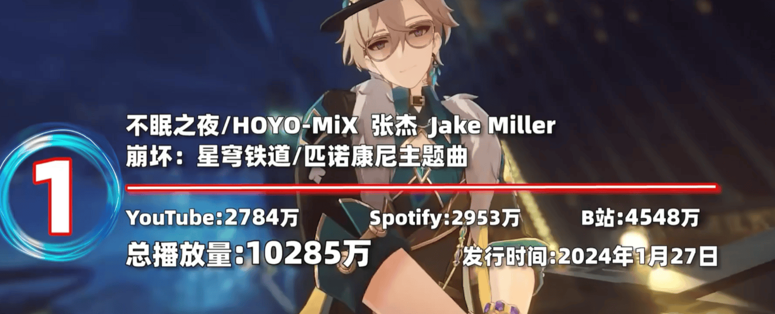 正因为崩铁音乐传播度够高、歌曲粘性够强,才能做到首首精品、首首出圈,这其中表现最猛的当属《不眠之夜》!这首2024年1月上线的歌曲,仅用两年时间就在全球砍下破亿的总播放量,历经时间沉淀依旧热度不减,也难怪玩家会调侃米哈游是“被游戏耽误的音乐公司”,这实力真不是吹的!
