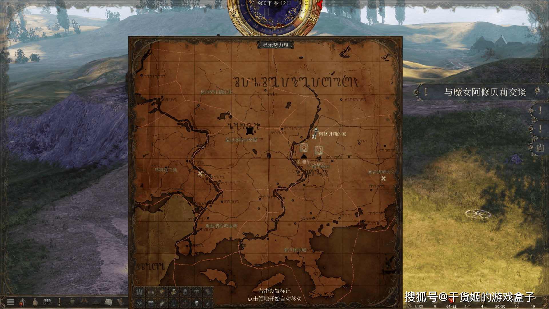 作为一款类骑砍游戏,《历史的终结》的核心玩法在于大地图旅行与历史模拟,玩家在大地图上行动,全世界便行动起来,玩家在大地图上静止,则全世界也停止了运转,当世界运转时,一切都在时刻变化。可能上一秒我们问询到的需要寻找的人还在b处,等我们赶到那里时,需要寻找的人已经去了c处。我们只能继续朝着c处寻找,这一设定确实很真实,但是也非常让人抓狂。好像骑砍中也是这么设定的。不过玩家可以在大地图上设定好曾经到达过的地点后,让角色自动行动到指定位置。