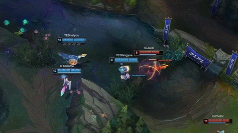 但IG这局比赛更离谱,在TES大量失误的情况下打出了巨大的优势,结果Photic一个5-0的轮子妈经济不如Jiaqi的女枪,下路团战单挑女枪直接翻车导致团战失败,在IG拿下大龙推进的过程中,三打五闪现想要收割结果直接暴毙。
