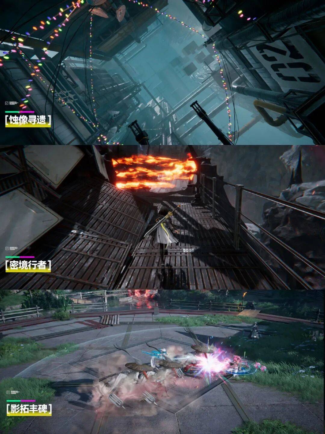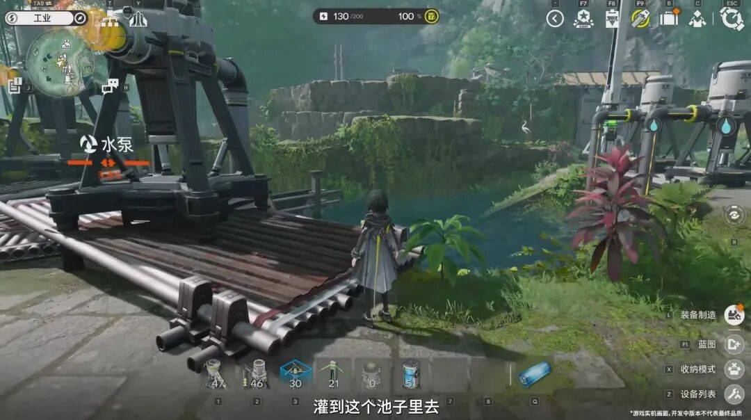 在三测里饱受玩家好评的一系列巧思,就是这种任务剧情、探索玩法和工厂基建的结合。比如在武陵城,解锁了给水器、排水渠 、转轮机等等“水”相关的设施后:需要先把水抽干才能通过的障碍/进入的洞穴、通过水流冲刷触发的机关、被水位变化推进的任务剧情……